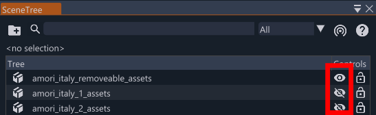 To ensure that the map does not show any of the newly placed assets during freeroam, but all of the original assets are displayed, only save the level if the display of the prefabs in the SceneTree is adjusted correctly. See: